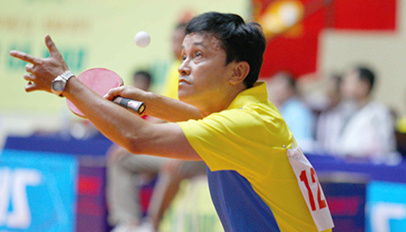 Nguyễn Văn Hùng, tay vợt ngoài 40 tuổi của đội bóng bàn Cần Thơ tại Giải vô địch bóng bàn toàn quốc 2015. Ảnh: NGUYỄN MINH