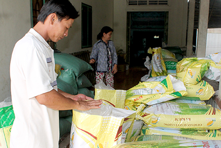Mua bán lúa giống tại một điểm kinh doanh lúa giống ở huyện Thới Lai, TP Cần Thơ.