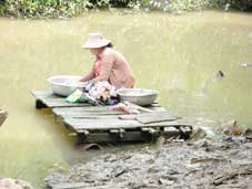Người dân rạch Rạp không có nước sạch sử dụng, nên mọi sinh hoạt, giặt giũ, tắm rửa đều sử dụng nước từ con rạch này. |