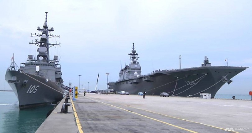 Chiến hạm JS Inazuma (trái) và JS Kaga của Nhật Bản. Ảnh: CNA