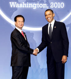 Thủ tướng Nguyễn Tấn Dũng nhấn mạnh Việt Nam ủng hộ mạnh mẽ và tích cực đóng góp vào nỗ lực chung của cộng đồng quốc tế trong việc giải trừ và không phổ biến vũ khí hạt nhân, chống khủng bố dưới mọi hình thức và thúc đẩy sử dụng năng lượng hạt nhân an ninh, an toàn vì mục đích hòa bình, vì lợi ích của các quốc gia. Việt Nam hoan nghênh việc ký Hiệp ước về cắt giảm vũ khí tiến công chiến lược mới đây giữa Nga và Mỹ. Sự kiện này là một bước tiến quan trọng trong những nỗ lực chung hướng tới một thế giới không có vũ khí hạt nhân.