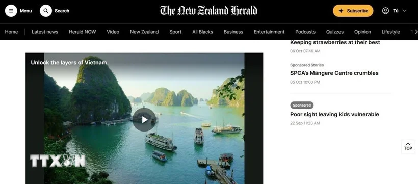 Ngày 6/10, trang tin The New Zealand Herald đăng bài viết đánh giá rằng từ những dòng nước xanh ngọc lục bảo của Đồng bằng sông Cửu Long đến vẻ hùng vĩ cổ kính của Huế, hay nhịp sống sôi động và tràn đầy năng của những con phố tấp nập ở Thành phố Hồ Chí Minh, Việt Nam mang đến cho du khách New Zealand những điều mà hầu hết các điểm đến khác không thể, đó là những trải nghiệm thực sự bất ngờ trong từng ngõ ngách.