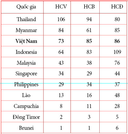 Bảng tổng sắp huy chương tính đến 20g00 ngày 21-12