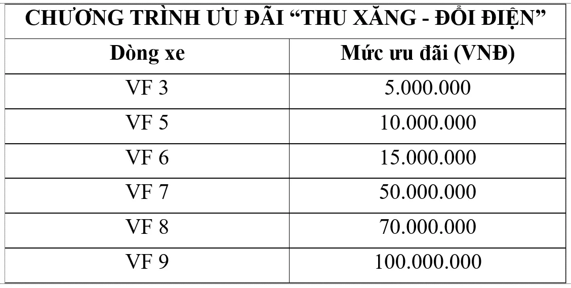 VinFast công bố chương trình “thu xăng - đổi điện” ưu đãi lên đến 100 triệu đồng/xe