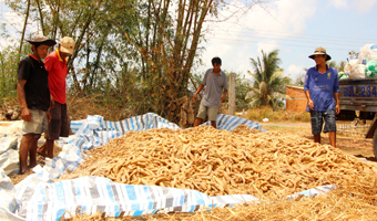 Người dân thị xã Vĩnh Châu phơi xá pấu trước khi dự trữ chờ tăng giá.