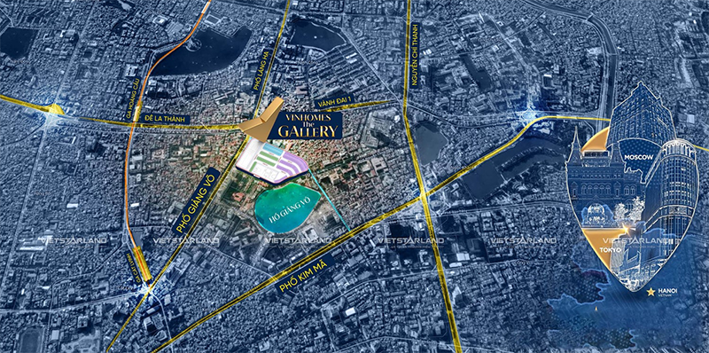Tọa lạc tại vị trí 148 Giảng Võ, nơi từng là Trung tâm Triển lãm Giảng Võ, dự án sở hữu vị thế "độc tôn" với tầm nhìn panorama ra hồ Giảng Võ thơ mộng. Kết nối trực tiếp với các trục giao thông huyết mạch như Kim Mã, Nguyễn Chí Thanh và Đê La Thành, Vinhomes Gallery Giảng Võ được đánh giá là quỹ đất vàng cuối cùng còn sót lại tại khu lõi trung tâm hành chính - chính trị của Hà Nội.