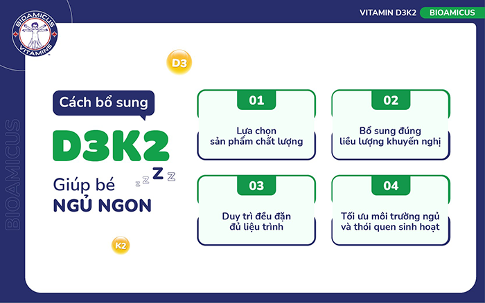 Bổ sung vitamin D3K2 đúng cách giúp bé ngủ ngon, phát triển tối ưu.