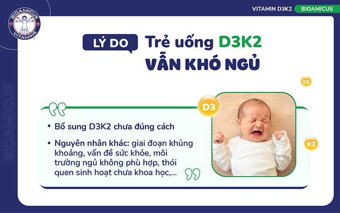 Lý do trẻ uống D3K2 vẫn khó ngủ.