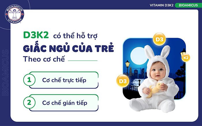 D3K2 hỗ trợ giúp trẻ ngủ ngon hơn theo cả cơ chế trực tiếp và gián tiếp, trong đó vai trò chính đến từ vitamin D.
