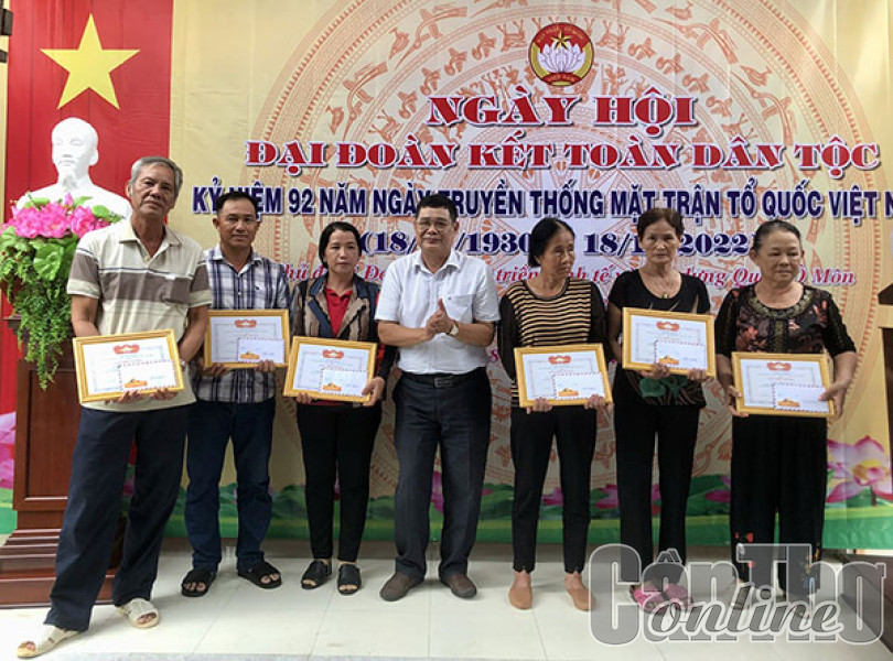 Các hộ gia đình có thành tích tốt trong thực hiện Cuộc vận động "Toàn dân đoàn kết xây dựng nông thôn mới, đô thị văn minh" được biểu dương, khen thưởng tại Ngày hội Ðại đoàn kết toàn dân tộc ở khu vực 12, phường Châu Văn Liêm.