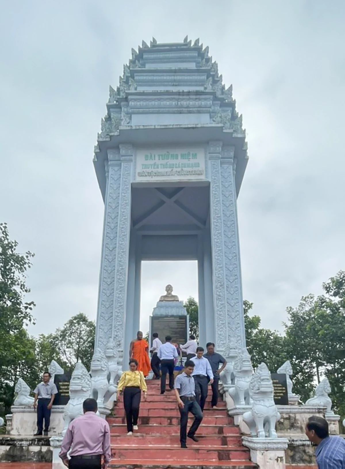 Đài tưởng niệm truyền thống cách mạng dân tộc Khmer (xã Tạp Ngãi, tỉnh Vĩnh Long) là di tích lịch sử ý nghĩa, nhằm tri ân những cống hiến, hy sinh của đồng bào, chiến sĩ Khmer và giáo dục thế hệ trẻ tiếp nối truyền thống đoàn kết, gắn bó cùng dân tộc. Ảnh: T.Long
