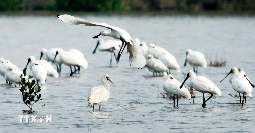 Cò thìa được xếp hạng Nguy cấp trong Sách Đỏ quốc tế, mỗi năm chỉ xuất hiện 40 cá thể trong Vườn Quốc gia Xuân Thủy. (Ảnh: Lâm Khánh/TTVN)