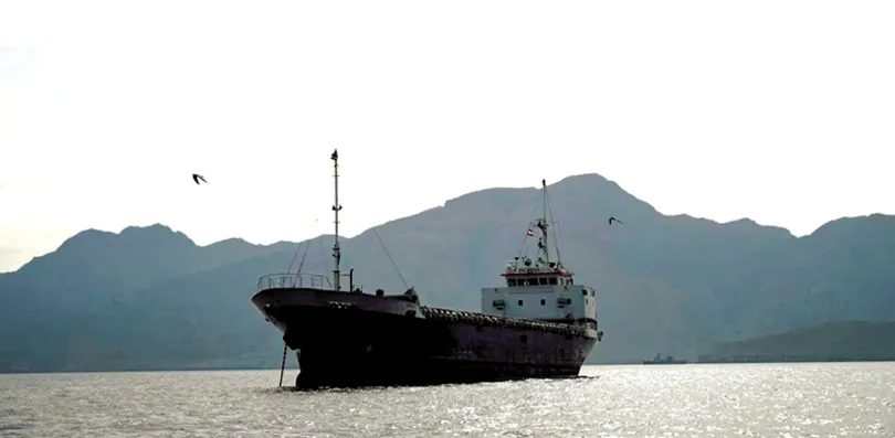 Một con tàu ở eo biển Hormuz, khu vực ngoài khơi Oman hôm 12-4. Ảnh: Reuters