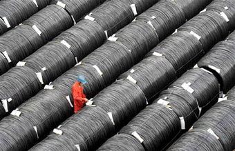 Một nhân viên kiểm tra các cuộn dây thép tại một nhà máy ở Đại Liên, tỉnh Liêu Ninh. Ảnh: Reuters.