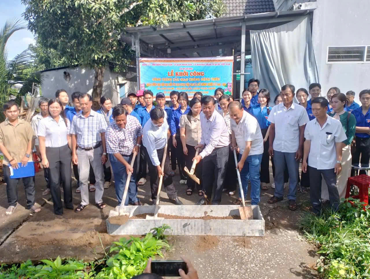 Lễ khởi công cầu giao thông nông thôn tại xã Mỹ Hương, từ nguồn kinh phí xã hội hóa.