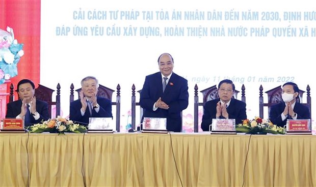 Chủ tịch nước nhấn mạnh, Văn kiện Đại hội lần thứ 13 của Đảng đã đặt ra yêu cầu, nhiệm vụ đó là xây dựng nền tư pháp Việt Nam chuyên nghiệp, hiện đại, công bằng, nghiêm minh, liêm chính, phụng sự Tổ quốc, phục vụ nhân dân. Chiến lược cải cách tư pháp có ý hết sức quan trọng đối với sự phát triển của đất nước, của chế độ trong giai đoạn mới, nhất là đối với hệ thống bộ máy Nhà nước, gồm cả hệ thống tòa án nhân dân các cấp.