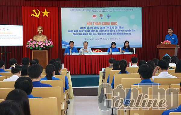 Hội thảo “Vai trò của tổ chức Ðoàn TNCS Hồ Chí Minh trong việc bảo vệ nền tảng tư tưởng của Ðảng, đấu tranh phản bác các quan điểm sai trái, thù địch trong tình hình hiện nay”, do Thành đoàn Cần Thơ phối hợp Học viện Chính trị khu vực IV và Trường Ðại học Cần Thơ tổ chức vào tháng 9-2022. Ban tổ chức đã tiếp nhận 293 bài viết của các chuyên gia, nhà khoa học, đoàn viên, thanh niên (ÐVTN). Nhiều tác giả cho rằng xây dựng tổ chức Ðoàn - đội hậu bị của Ðảng vững về tư tưởng, mạnh về tổ chức là nhiệm vụ then chốt góp phần giáo dục lý tưởng cách mạng, củng cố niềm tin của ÐVTN với Ðảng, bảo vệ vững chắc nền tảng tư tưởng của Ðảng.