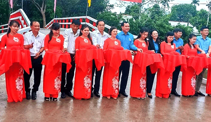 Nhân dân xã Trường Long tin tưởng, chung sức đồng lòng đóng góp xây dựng nhiều công trình trên địa bàn. Trong ảnh: Lãnh đạo các cấp cắt băng khánh thành cầu nông thôn ở xã Trường Long.