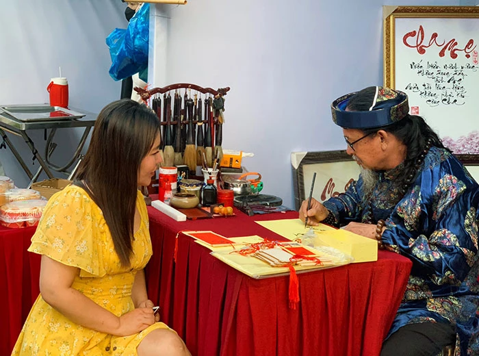 Viết thư pháp - một trong những hoạt động thu hút du khách tại Ngày hội Du lịch - Ðêm hoa đăng Ninh Kiều.