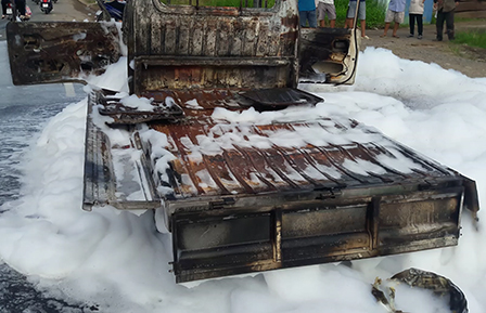Xe bán tải chở hóa chất bốc cháy khi đang lưu thông