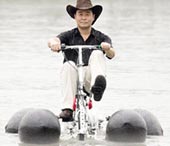 “Khi ở trên bờ, nó chạy như xe đạp bình thường. Nhưng khi xuống nước, các túi khí sẽ được bơm lên và xe có thể đi với vận tốc 5 km/giờ”, Deng mô tả. “Cha đẻ” chiếc xe cho biết anh tốn hai năm trời để thiết kế và cho ra đời sản phẩm này với tổng kinh phí hơn 1.800 bảng Anh (52 triệu đồng). Xe được cấu thành từ hơn 300 linh kiện mà hầu hết là đồ tự chế.