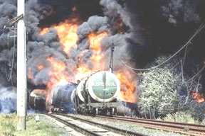(TTXVN)- Theo các nguồn tin nước ngoài, ngày 24-8, một đoàn xe lửa chở nhiên liệu của Gruzia đã phát nổ ngay gần thành phố Gori của nước này sau khi vấp phải mìn chôn dưới đường ray (ảnh). Người phát ngôn Bộ Nội vụ Gruzia Shota Utiashvili khẳng định hệ thống đường ray đã bị đặt mìn và đây chính là nguyên nhân gây ra vụ nổ. Ông chưa đưa ra thông tin về số thương vong.