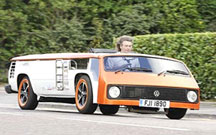 Một thợ máy ở hạt Dorset (Anh) chuẩn bị ghi tên mình vào Sách Kỷ lục Guinness thế giới nhờ “chế” ra chiếc xe tải camper (loại xe có chỗ để tài xế ngủ) thấp nhất thế giới. Trong vòng 3 ngày, Andy Saunders cùng 3 người bạn đã cải tạo chiếc camper hiệu Volkswagen cao 2,3 m thành kiểu xe mới chỉ cao hơn 1 m. Do xe quá lùn nên người lái xe Van-Cake phải thò đầu ra khỏi mui (ảnh). Xe có thể chạy bình thường với vận tốc 128 km/giờ dù các “nhà sáng chế” đã thay mới hệ thống lái, bình xăng, hạ thấp ghế ngồi, thay đổi vị trí thắng tay và cần số. Ông Saunders - người chủ ý cải tạo xe để tham gia tranh tài tại một lễ hội ôtô - cho biết khi cần, bạn có thể buông tấm nệm ở sau lưng ra ngủ.