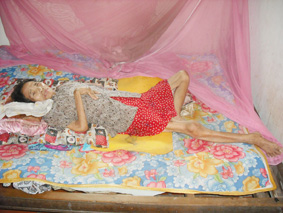 Một bà cụ gầy còm, chỉ còn da bọc xương, đang nằm trên chiếc giường ọp ẹp và bà chỉ ú ớ được vài tiếng. Tuy bà nói không thành lời nhưng tôi cảm nhận được qua ánh mắt hiền hòa, buồn rười rượi của bà. Ông Lâm Văn Hải, chồng bà Hảo, cho biết: “Vợ tôi bệnh đến nay cũng gần một năm, sức khỏe ngày càng yếu”. Trước khi bà Hảo đổ bệnh, gia đình đã rất khó khăn. Không có ruộng đất nên dù tuổi cao, ông bà vẫn phải làm thuê, làm mướn trang trải cuộc sống hàng ngày, lo cho con cháu. Chỉ trong một đêm, căn bệnh quái ác đã cướp đi sức khỏe của bà Hảo. Khi đó, gia đình vay mượn bà con trong khu vực, đưa bà đến Bệnh viện Đa khoa quận Thốt Nốt điều trị được khoảng một tuần. Sau đó, không có tiền điều trị tiếp, đành đưa bà về nhà chăm sóc. Từ khi bà ngã bệnh đến nay, em Cao Thị Như Thủy (cháu ngoại) đang học lớp 6 phải nghỉ học để ở nhà chăm sóc cho bà ngoại. Bản thân ông Hải cũng già yếu, công việc trong nhà chỉ nhờ vào một tay cháu Thủy.