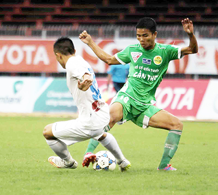 Văn Thắng (phải) sẽ tiếp tục ghi bàn cho XSKT Cần Thơ chiều nay? Ảnh: Nguyễn Minh