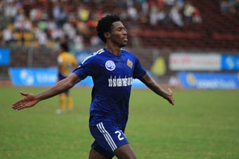 Mustapha mừng bàn thắng nâng tỷ số cho XSKT Cần Thơ. |