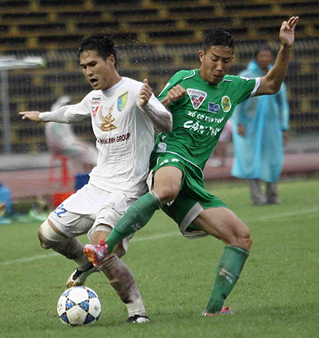 Huỳnh Tấn Hùng (phải) chỉ chơi tròn vai ở trận này.