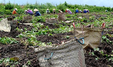 Hành động rời rạc, chưa thể hiện được quyết tâm của "4 nhà" làm các mô hình sản xuất, quản lý mới trong sản xuất nông nghiệp khó nhân rộng. Trong ảnh: Thu hoạch khoai lang ở Tân Thành, huyện Bình Tân, tỉnh Vĩnh Long. Ảnh: T. LONG