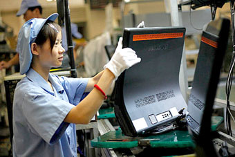 Ngành công nghiệp máy tính và điện tử Trung Quốc bị tác động nặng nề bởi sự suy thoái của nền kinh tế thế giới. Ảnh: AP |