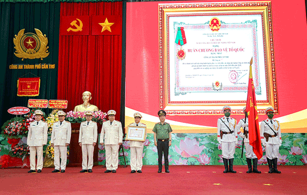 Công an TP Cần Thơ nhận Huân chương Chiến công hạng Nhì trong phong trào thi đua đặc biệt “Công an nhân dân - Lá chắn thép phòng, chống dịch COVID-19 - Thanh bảo kiếm bảo đảm an ninh trật tự, an toàn xã hội”.