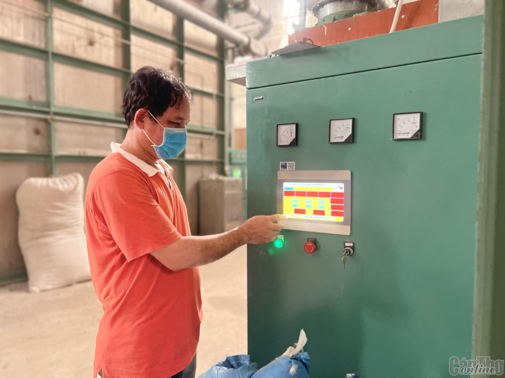 Anh Lê Đăng Tế, Tổ trưởng kỹ thuật xưởng 1, Công ty TNHH Kwong Lung - Meko vận hành máy phân loại lông vũ. Ảnh: MINH HUYỀN
