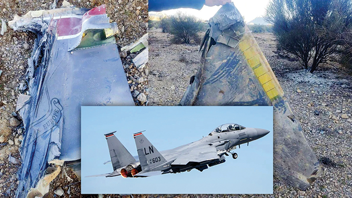 Mảnh vỡ của tiêm kích F-15 bị bắn rơi tại Iran. Ảnh: Iran State Media/USAF