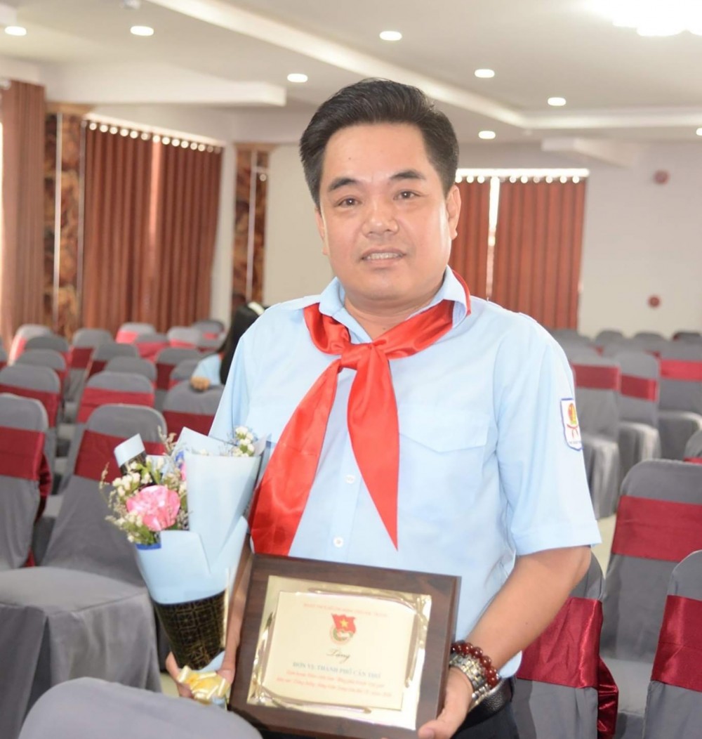 Anh Phan Hoàng Để, giáo viên- Tổng phụ trách Đội Trường Tiểu học Trung Thạnh 1, huyện Cờ Đỏ, luôn tâm huyết với phong trào thiếu nhi. Ảnh do nhân vật cung cấp.
