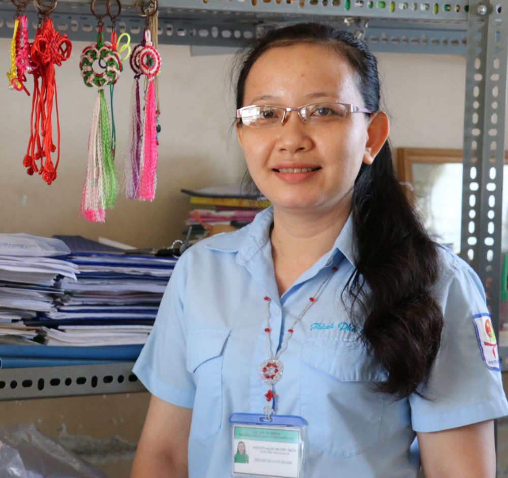 Chị Nguyễn Đặng Huyền Trân, giáo viên - Tổng phụ trách Đội Trường THCS Thới Long (quận Ô Môn) đã có nhiều sáng kiến giúp học sinh học tập, rèn luyện. Ảnh: Q. THÁI