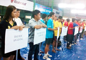 Các vận động viên sinh viên tại lễ khai mạc giải Cầu lông các trường Đại học, Cao đẳng khu vực ĐBSCL năm 2014. |